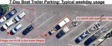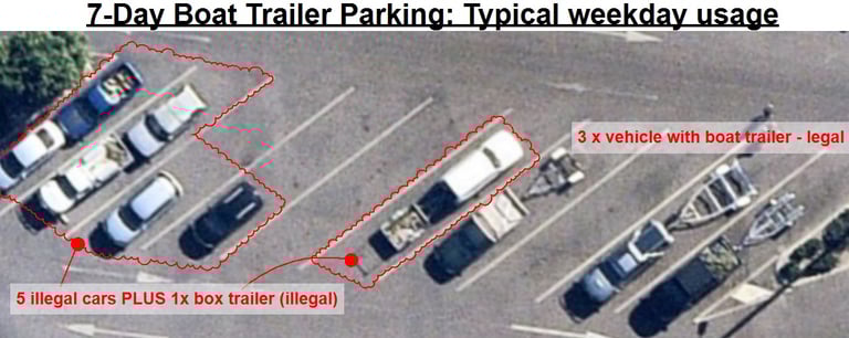 A 14 day Survey (10am) realised how under-utilised the 7-Day Boat Trailer parking is.