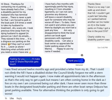The ferry is about to leave, there are no available Disabled Parking bays....and you see plenty of vacant parking at the nearby 7-Day Boat Trailer park.