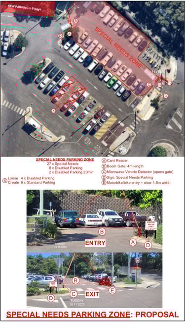 The difficulty is that these mobility impaired Macleay Island commuters will need dedicated parking bays.....